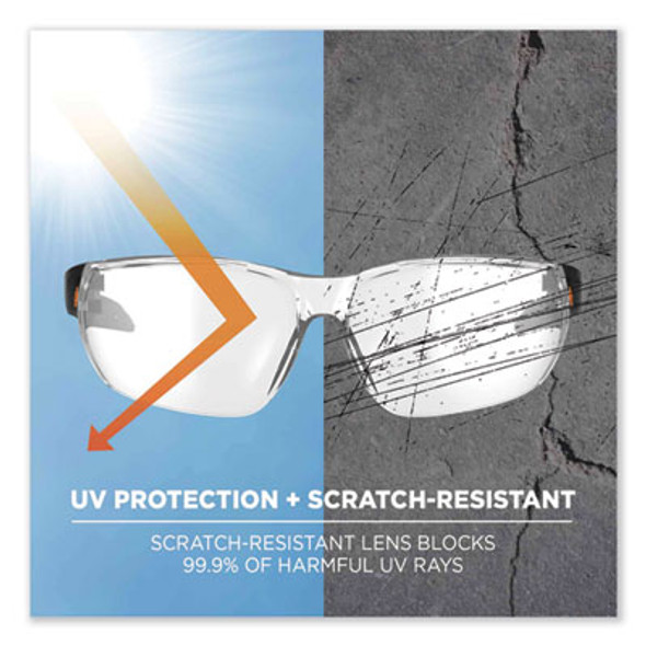 Skullerz® Vali Frameless Safety Glasses are the lightest weight safety glasses in the Skullerz® Eye Protection line. These protective z87 safety glasses feature tough scratch-resistant lenses to filter 99.9 percent of harmful UVA, UVB and UVC rays and a frameless design for full field of vision. Available in a variety of lenses to suit a range of tasks and light environments. It's everything you've come to expect from Skullerz® Eye Protection at an outstanding value. The clear frame design maximizes the field of vision. These impact-resistant safety glasses are tested to ANSI Z87.1+ High-Velocity Impact Protection and optical requirements. ANSI Z87.1 is the U.S. standard for Personal Eye and Face Protection Devices and is listed on the frame.
